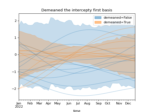 )Using a demeaned basis to remove “intercept” effect of first basis: